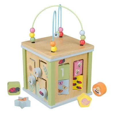 The Orange Tree Toys Spring Garden Activity Cube is perfect for keeping little ones entertained whilst learning new skills.The activity cube features 5 different activities including a bead frame, shape sorter, maze, spinning cogs and turning blocks. Made from sustainable wood which supports responsible management of world forests.The bead frame turns upside down so that it can be stored inside the cube making it easy for storage when it is not in use.