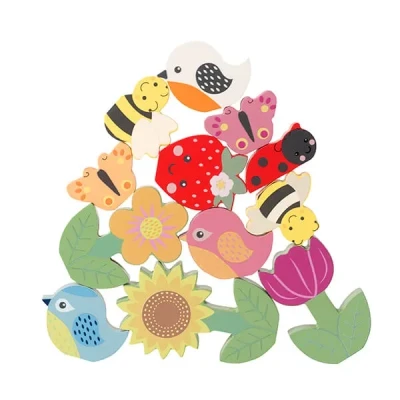 Imagination takes flight with this charming set. The vibrant colours and diverse shapes encourage children to engage in creative play, helping them learn about the various elements they might encounter in a real garden. Whether building a tall flower tower or creating an animal scene, the Stacking Spring Garden unlocks endless possibilities for storytelling and imaginative exploration.