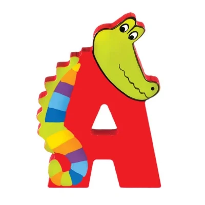 This Orange Tree Toys alphabet letter 'A' is handcrafted wood and painted in a bright and colourful design featuring an alligator.Size: 7(H) x 5(W) x 1(D)cm.