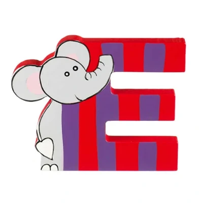 This Orange Tree Toys alphabet letter 'E' is handcrafted wood and painted in a bright and colourful design featuring an elephant.Size: 7(H) x 5(W) x 1(D)cm.