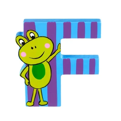 This Orange Tree Toys alphabet letter 'F' is handcrafted wood and painted in a bright and colourful design featuring a frog.Size: 7(H) x 5(W) x 1(D)cm.