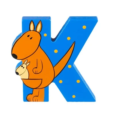 This Orange Tree Toys alphabet letter 'K' is handcrafted wood and painted in a bright and colourful design featuring a kangaroo.Size: 7(H) x 5(W) x 1(D)cm.