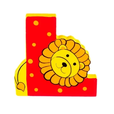 This Orange Tree Toys alphabet letter 'L' is handcrafted wood and painted in a bright and colourful design featuring a lion.Size: 7(H) x 5(W) x 1(D)cm.