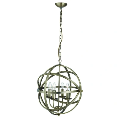 Orbit 4 Light Spherical Cage Ceiling Pendant Antique Brass, E14