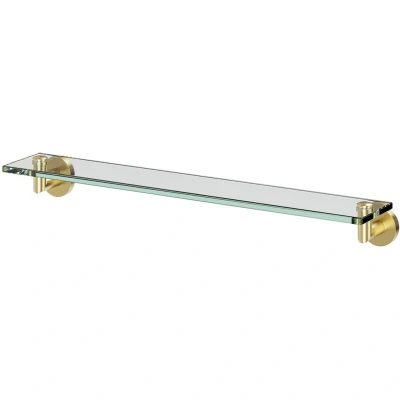 General description This Colore Orbit Brushed Brass and Glass 600mm Wall Mounted Vanity Shelf transforms your bathroom into a realm of luxury. More than just a storage solution, it serves as a statement piece that exudes sophistication. Crafted with toughened safety glass, this shelf ensures durability while adding a touch of contemporary elegance. The stylish brushed brass supports are both functional and visually appealing, seamlessly complementing your bathroom interiors. Technical specifications Model Number: WDB14613 Material: Toughened safety glass Support: Brushed brass Dimensions: 600mm Installation Fixings included for easy installation Usage Perfect for enhancing bathroom interiors Combines form and function for effective storage