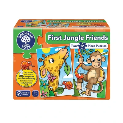 Orchard Toys First Jungle Friends Jigsaw Puzzle, 12 Piece Jigsaws, Two Puzzles in a Box, Perfect For Kids Ages 2+, Develops Hand Eye Coordination