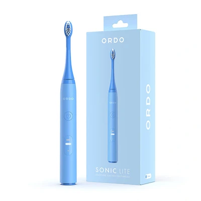 The Ordo Sonic Lite Electric Toothbrush - Ocean delivers powerful 35,000 pulse-per-minute sonic cleaning with two brushing modes, a smart 2-minute timer, and over 5 weeks of battery life per charge. Stylish, waterproof, and travel-friendly, it's suitable for all users—including those with dental appliances.