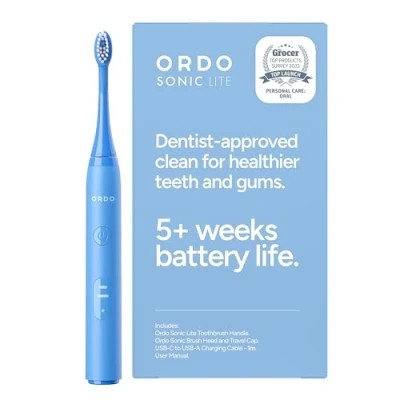 Powerful Sonic Cleaning: Unleash the power of 35,000 sonic pulses per minute with the Ordo Sonic Lite; the ultimate soft toothbrush for adults who demand a deep clean. This lightweight and compact, travel toothbrush promotes whiter, healthier teeth, making it a smart choice for your oral care routine. Long-Lasting Battery Power: With Ordo Sonic Lite electric toothbrushes say goodbye to frequent charging with our long-life Lithium-Ion battery. This rechargeable toothbrush for adults offers 5+ weeks of use per charge. Our battery toothbrush comes with LED indicator that will keep your brushing routine on point with USB-C charging. Dual Brushing Modes: Customize your brushing routine with two tailored modes – Clean and Sensitive. Whether you need the effective reach of a firm toothbrush or the gentle touch, this soft toothbrush supports your personal dental care needs. Smart, Travel-Friendly Design: Thoughtfully engineered with a 2-minute timer and quad-pacer, the Ordo Sonic Lite helps you evenly clean all areas of your mouth for thorough tooth care. Its waterproof build makes it the perfect travel companion. Whether you're at home or on the go, this soft bristle toothbrush supports your daily oral care routine with ease and efficiency. Stylish and Functional: Designed with both style and function in mind, the Sonic Lite Toothbrush comes in five iconic colors and delivers high-quality oral care without the premium price. Each pack includes a tooth brush head and a USB-C charging cable, making it a convenient and stylish choice that's even suitable for dental work.