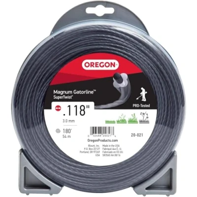 High cutting efficiency – Magnum Gatorline allows you to get cleaner, straighter cuts with less effort than traditional trimmer line Durable – High-strength inner core resists breakage which means that the line lasts longer and you spend less time winding spools Twisted trimmer line – Produces fewer decibels and less drag than other shapes for less noise while trimming. The twist shape also delivers a straight cut, making it perfect for trimming around flower beds 0.118" diameter trimmer line is a good size for industrial landscaping on areas the need a large amount of trimming such as large estates and yards, huge gardens and golf courses Cuts through low grasses, weeds and brambles quickly and easily, Weight: 0.8377565956 pounds, Manufacturer: Oregon