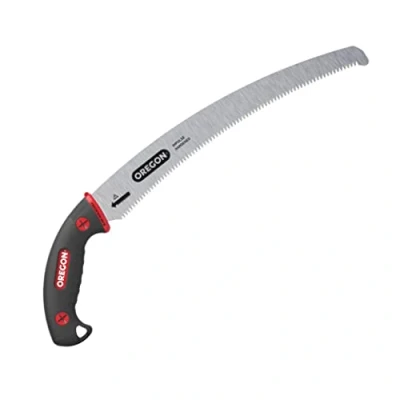 Oregon (600136)Curved Premium Japanese High Carbon Steel Hand Saw, Rust Proof Forestry/Pruning/Cutting Tool, Curved Blade with Scabbard Safety Sheath ,Red,13"