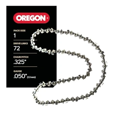 18 in. narrow kerf chain made by the world's leading saw chain manufacturer. Pitch: .325", gauge: .050", drive link count: 72 For saw sizes 38 55 cc LubriTec keeps your chain and guide bar oiled for less friction and longer life. Blued Cutters deliver high quality protection against corrosion. Exclusive OCS 01 Steel provides greater durability. Expanded Top Plate Filing Indicators and depth gauge filing indicators area make accurate sharpening easier Always use a SpeedCut narrow kerf chain in combination with SpeedCut or other narrow kerf bars.Longer nose life and better performance with a new Sprocket nose system, Weight: 0.64 pounds, Manufacturer: Oregon Tool