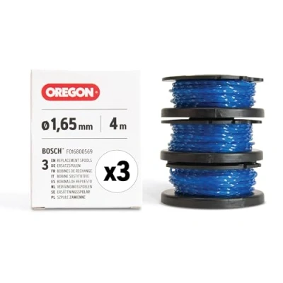 𝗥𝗘𝗣𝗟𝗔𝗖𝗘𝗠𝗘𝗡𝗧 𝗙𝗜𝗧: Designed to replace Bosch F016800569. With the pre-filled 1.65mm strimmer spool replacement, upgrade your strimmer in 3 easy steps - remove, snap in, and trim 𝗙𝗜𝗧𝗦 𝗕𝗢𝗦𝗖𝗛: This strimmer spool is compatible with Bosch EasyGrassCut models, including 18, 18-230, 18-260, 18-26, 18V-230, 18V-26 and 18V-260, allowing quick spool replacement 𝗨𝗣𝗚𝗥𝗔𝗗𝗘 𝗬𝗢𝗨𝗥 𝗚𝗥𝗔𝗦𝗦 𝗦𝗧𝗥𝗜𝗠𝗠𝗘𝗥: With Oregon Gatorline square twist strimmer line, delivering consistent results, lasts longer and reduces line breakage to tackle thick grass, weeds, and heavy trimming jobs with ease 𝗦𝗤𝗨𝗔𝗥𝗘-𝗧𝗪𝗜𝗦𝗧 𝗗𝗘𝗦𝗜𝗚𝗡: This square twisted pre-wound line helps reduce vibration, noise and drag, allowing for smoother strimming and efficient cutting, great for lightweight & battery strimmers 𝗢𝗥𝗘𝗚𝗢𝗡 𝗤𝗨𝗔𝗟𝗜𝗧𝗬: Oregon products are trusted worldwide since 1947 for their quality performance, durability and convenience, to make your experience of home and garden work easier and efficient, Weight: 0.2645547144 Pounds, Manufacturer: Oregon