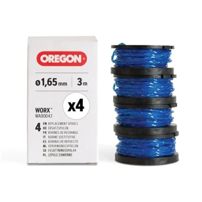 𝗥𝗘𝗣𝗟𝗔𝗖𝗘𝗠𝗘𝗡𝗧 𝗙𝗜𝗧: Designed to replace the Worx WA0004.1. With the pre-filled 1.65mm strimmer spool replacement, upgrade your strimmer in 3 easy steps - remove, snap in, and trim 𝗙𝗜𝗧𝗦 𝗪𝗢𝗥𝗫: This strimmer spool is compatible with popular Worx models including WG154Z, WG157E, WG169E, WG163E, WP164E, and WP165E, allowing for quick spool replacement 𝗨𝗣𝗚𝗥𝗔𝗗𝗘 𝗬𝗢𝗨𝗥 𝗚𝗥𝗔𝗦𝗦 𝗦𝗧𝗥𝗜𝗠𝗠𝗘𝗥: With Oregon Gatorline square twist strimmer line, delivering consistent results, lasts longer and reduces line breakage to tackle thick grass, weeds, and heavy trimming jobs with ease 𝗦𝗤𝗨𝗔𝗥𝗘-𝗧𝗪𝗜𝗦𝗧 𝗗𝗘𝗦𝗜𝗚𝗡: This square twisted pre-wound line helps reduce vibration, noise and drag, allowing for smoother strimming and efficient cutting, great for lightweight & battery strimmers 𝗢𝗥𝗘𝗚𝗢𝗡 𝗤𝗨𝗔𝗟𝗜𝗧𝗬: Oregon products are trusted worldwide since 1947 for their quality performance, durability and convenience, to make your experience of home and garden work easier and efficient, Weight: 0.2645547144 Pounds, Manufacturer: Oregon