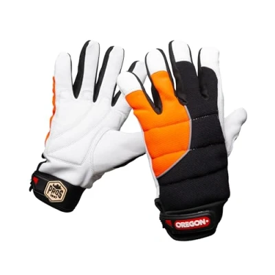 CHAINSAW PROTECTION: ForestXFiber technology provides left-hand chainsaw cut protection (EN ISO 11393-4:2019 Class O (16m/s)) ERGONOMIC: Chainsaw cut protection fabrics are ergonomically integrated for maximum comfort while working REFLECTIVE AND HI-VIS :Reflective strips increase visibility, in addition to bright high-vis colour fabrics COMFORT AND FLEXIBILITY: Goat skin leather with spandex back provides smooth, flexible fit; padded palms support antivibration functionalit SECURE FIT: Flexible, neoprene cuff is easy to put on, includes hook-andloop closure for snug fit and keeps debris and weather elements out, Manufacturer: Oregon