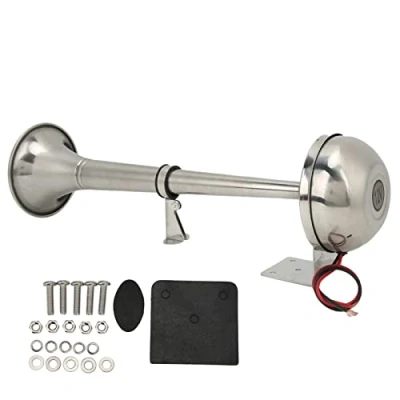 📢High-Cost Performance---Super Loud Air Horn, The Stainless Steel Trumpet air horn is made from 100% non‑magnetic stainless steel material to ensure durability and longevity. Bright polished finish that will not rust. It can work in a variety of temperature environments, no matter wherever you are. 📢Super-Loud---Train Horn Kit for Truck, Trumpet Air Horn Compressor Kit will produce a powerful loud tuned train sound that blares out a warning that can't be ignored. It is specially designed for external use, very suitable for marine applications in saltwater environments, but can also be used for other vehicles with 12V systems. 📢Easy to Install---12V Single Trumpet Air Horn, Almost everything you need for installing the air horn is included in packing. The installation is simple, only two wires can be easily connected, and no om‑board air system is required. Package including Loud single air horn, 2pcs rubber pad, 5pcs screw, 5pcs nut and 10pcs gasket, which can meet your needs. 📢Application---Train Horn for Car, Any 12-volt yachts, vehicle, trucks, SUV's, RV's, and boats. Suitable in a fresh or salt water environment, ideal for almost any weather condition. WARNING: This air horn kit is really loud. Please do not use it near school or hospital, residential area. 📢After Sale Service---We offer 24-hour customer service, any problems (whether it’s before or after buying the product) please feel free to contact us, we assure you a satisfied solution.