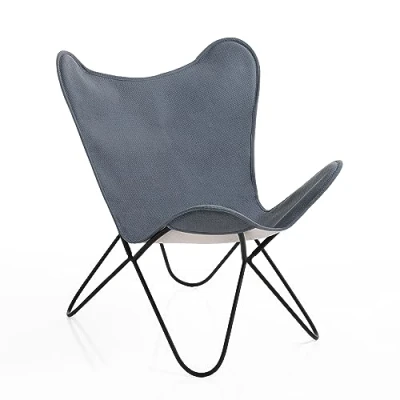 YANTRA GREY Butterfly armchair YANTRA programme - Waffle - 100% cotton cover with honeycomb finish - armchair size cm. L.80 x D.70 x H.83 - Seat size cm. L.63 x D.50 x H.36 - legs made of black painted iron - The fabrics may undergo slight variations in shades as they are handmade by Indian artisans. - We recommend not exposing the product directly to the sun - Made in India