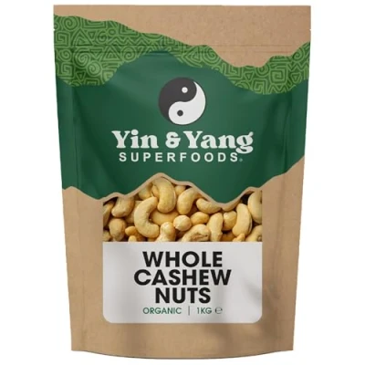 Organic Cashew Nuts 1kg Whole, Raw, 100% Natural, by Yin & Yang Superfoods. Premium Quality, Source of Fibre Protein, Vegan, Contains Antioxidants, Certified