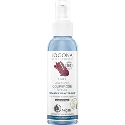 The vegan Logona Med Couperose spray helps against red veins, relieves tension from skin prone to couperose quickly and even on the go The formula with the exclusive active ingredient Silidine from red algae supports cell regeneration, has a calming effect and relieves redness for a long time. Also suitable for quick refreshment throughout the day. Alcohol-free The anti-couperose face spray with pump dispenser cools the skin, provides it with moisture, strengthens the vessel walls, increases its elasticity and prepares it optimally for subsequent care. In sustainable packaging: bottle made from 100% rPET and label made from 50% rPE - recycled and recyclable The Logona med products have been developed with the support of the German Rosazea Help e. V. The recommendation is 85% (application test of 75 members of the mentioned club over 3 weeks, June 2019) 40 years of expertise and knowledge. Produced to the highest quality standards and 100% NATRUE certified. Free from synthetic fragrances, colourants and preservatives as well as mineral oil-based raw materials. Made in Germany with CO2-neutral production and sustainable packaging