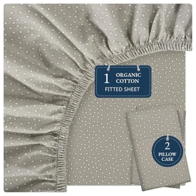 Organic Cotton King Fitted Sheet Ultra Soft & Breathable with 2 Pillow Covers, 35cm Deep Pocket, Elastic Edges Bottom Sundrop