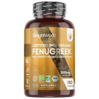 HERBAL BOTANICAL GOODNESS: Fenugreek has been part of traditional practices for generations and is valued across cultures for its unique plant-based properties. It is a source of dietary fibre and naturally contains plant compounds such as saponins, flavonoids, and polyphenols. Additionally, it is rich in key minerals like iron, magnesium and manganese. WeightWorld's Fenugreek Capsules offer a simple way to include this well-known herb in daily routines. 180 CAPSULES - 3 MONTHS SUPPLY: Each bottle contains 180 capsules, offering a 3 months supply. WeightWorld's Organic Fenugreek Capsules can also be opened and the powder mixed into meals, cereals, teas, or salads for easy consumption. Moreover, they are unflavoured and do not contain any additives, binders, allergens, or fillers, making them suitable for everyday use. SOIL ASSOCIATION CERTIFIED ORGANIC: Made from organically grown fenugreek seeds, these capsules are prepared to keep the herb’s natural profile intact. Each batch is certified organic by the Soil Association and follows high standards from seed to capsule. This fenugreek supplement contains no gluten or lactose & fits well into keto- and paleo-friendly diets. 1500MG PER SERVING: Each serving delivers 1500mg of organic fenugreek seed powder. Take just 2 capsules per day to enjoy the goodness of this herb. This fenugreek supplement for women and men is vegan-friendly, making it suitable for those following plant-based diets. Moreover, these fenugreek powder capsules are made from non-GMO ingredients in a GMP-approved facility for consistency. THE JOURNEY OF WEIGHTWORLD: Born from a passion for food supplements, WeightWorld has been growing since 2006. With nearly two decades of experience, the brand offers a wide range of products, including vitamins, minerals, plant-based supplements, devices, and more. Now reaching multiple countries, the focus remains on developing products that evolve with changing needs while staying true to the values that started it all.