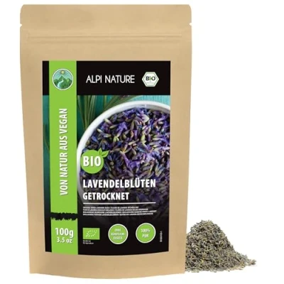 organic lavender blossoms (100g (3.5oz)), dried blossoms, from controlled cultivation, 100% natural, without additives