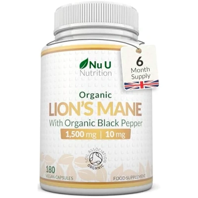 100% MORE CAPSULES - Our premium Lions Mane supplement is highly cost effective. With each bottle delivering 180 capsules to last you for a full six months. Other Lions Mane supplements do not provide nearly as many servings per bottle. In fact we provide 100% more capsules with most other supplements only providing between 90 and 120 capsules. As with all our products we aim to provide the highest quality and the best value for money. You won’t be disappointed. SUPERIOR STRENGTH FORMULATION - Our capsules contain 1500mg equivalent of mushroom before extraction, meaning each high strength 12:1 capsule contains 125mg of Organic Lion’s Mane extract, with an added 10mg dosage of Organic Black Pepper to enhance results. The mushrooms used in our supplement are water extracted, unlike many competitors that use synthetic or alcohol extraction solvents to ensure all beneficial nutrients are captured. CERTIFIED ORGANIC - Certified by the Soil Association (UK), Nu U Nutrion’s Lion's Mane capsules use organic farming methods. This means we use no pesticides, artificial fertilisers or other pollutants, making this Lion Mane mushroom supplement better for the planet as well as your wellness journey. MORE BENEFICIAL NUTRIENTS - Our formulation has been standardised to ensure 30% polysaccharides are delivered in every dose. Polysaccharides are attributed to giving Lions Mane its nootropic health benefits. To achieve this we only use the fruiting body of the mushroom, which is more nutrient dense. WE CARE - At Nu U Nutrition we are dedicated to not only providing you with premium nutritional supplements derived from the purest sourced ingredients, but we are also committed to providing YOU with the highest level of customer service possible. We are mindful to ensure all of our products are ethically sourced and we donate a proportion of each sale to One Tree Planted.