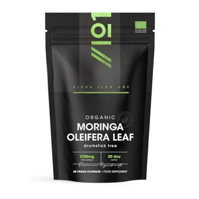 Organic Moringa 2100mg 60 Vegan Capsules Raw Oleifera Leaf Rich in Vitamins, Antioxidants & Amino Acid Resealable and Recyclable Pouch by Alpha01