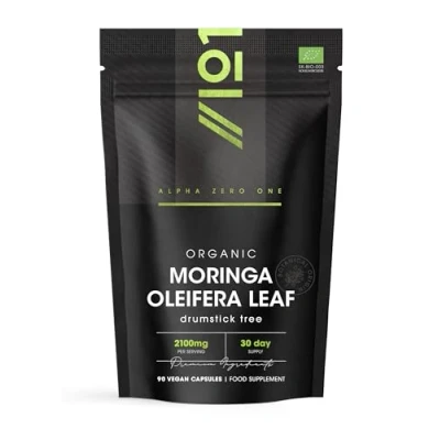 Organic Moringa 2100mg 90 Vegan Capsules Raw Oleifera Leaf Rich in Vitamins, Antioxidants & Amino Acid Resealable and Recyclable Pouch by Alpha01