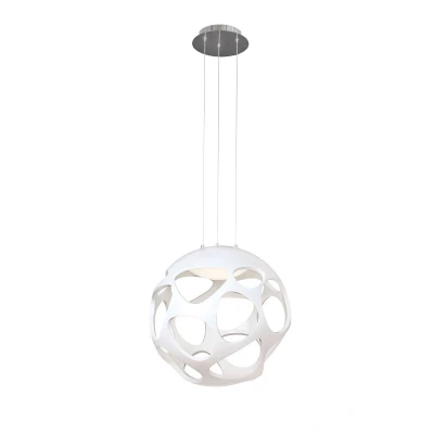 Organica's design has been inspired by the natural elements of marine formations. The white polymer shapes are sculpted to reflect the appearance of coral and natural sponges. The porous structures are transferred to the fittings in the form of multiple cut outs in various irregular shapes. This imitation creates wonderful and tranquil shadows when the fittings are illuminated and an intricate feature when turned off. Organica is a comprehensive collection offering a range of pendants, ceiling, wall and table lamps. The white polymer domes and globes are perfectly offset by the polished chrome detail. Organica is an elegant and transgressive design creating a key subject within the decorative space.