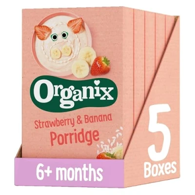 Organix Strawberry & Banana Organic Baby Porridge, 6+ Months, 120 g (Pack of 5)