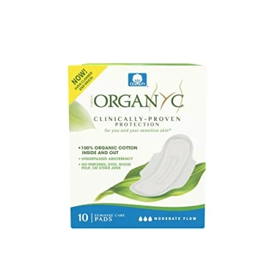 No chemicals, pesticides, or toxic materials; just pure natural cotton 99% of women saw reduced skin irritation when using Organyc brand pads, so they are ideal for women with sensitive skin The cotton used in Organyc Feminine Pads is 100% biodegradable and constructed of compostable-organic cotton and bleached without chlorine, no latex, no parabens, no perfumes, no SAP and no plastics or man-made materials Moderate-flow pads are made with safe ingredients, and the pads are pH balanced for complete comfort. Perfect for daytime use, and each pad comes individually wrapped