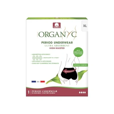 4-Layer Leak-Proof Protection – Designed with advanced multi-layer textile technology, featuring an absorbent core to retain flow, a waterproof barrier to prevent leaks, and a soft organic cotton layer for ultimate comfort. Soft & Breathable Organic Cotton – Made from 97% organic cotton, this period underwear ensures a gentle, irritation-free experience while keeping your skin dry and fresh. Eco-Friendly & Reusable – A sustainable alternative to disposable pads and tampons. Washable and reusable, reducing waste while providing reliable protection. High-Waist & Comfortable Fit – Designed for optimal support and coverage, offering a secure, non-restrictive fit that stays in place without compression. Day & Night Protection – Perfect for light to moderate flow, suitable for daytime wear, overnight protection, or active lifestyles. Can be worn alone or as additional protection with other menstrual products. Made in France – Premium Quality – Crafted with Oeko-Tex certified fabric, free from chemicals, ensuring durability, safety, and long-lasting performance.