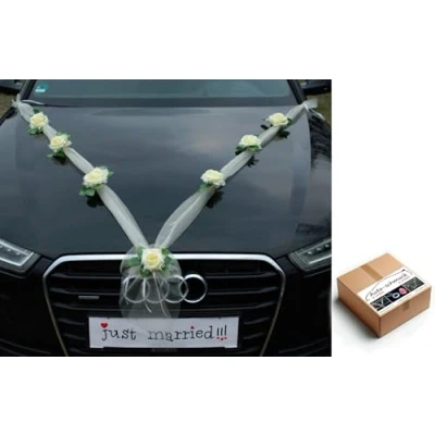 Organza M Auto Schmuck Braut Paar Rose Deko Dekoration Hochzeit Car Wedding Girlande PKW (Ecru2 / Ecru)