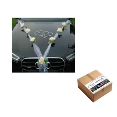 ORGANZA M + HERZEN Braut Paar Rose Deko Dekoration Autoschmuck Hochzeit Car Auto Wedding Ratan Girlande ®Auto schmuck PKW (Lemon/Weiß/Weiß)