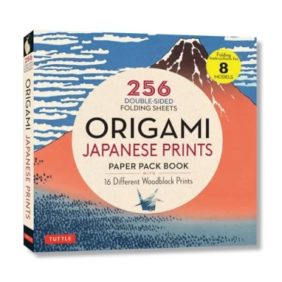 Origami Japanese Prints Paper Pack Book: 256 Double Sided Folding Sheets with 16 Different Woodblock solid colors on the back (Includes Instructions for 8 Models)
