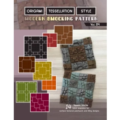 Origami tessellation style modern smocking pattern vol.4: Easy square quilt blocks, 14 stitch templates for 3D surface textured fabric manipulation, and patchwork tiling designs