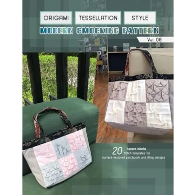 Origami tessellation style modern smocking pattern vol.8: 20 hand stitch square patchwork blocks for beginners, easy fabric manipulation and a simple tote bag sewing guide