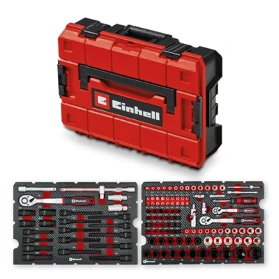 Car Pro–Perfect for hobby mechanics with impact sockets and bits for engine, gearbox and chassis. Versatile Sockets–For work on electronics, panels, interiors, engine and suspension. Special Bits–Hardened S2 steel ensures strength and long life under high load. Spark Plug Change–Two inserts 16/21 mm for safe and accurate spark plug replacement. Extended Reach–Extensions, joints and T-handle simplify hard-to-reach work areas. Powerful Work–Three ratchets (1/4", 3/8", 1/2") allow maximum torque transmission. E-Case System–Stackable case loadable up to 300 kg for safe tool transport., Weight: 22.928075248 pounds, Manufacturer: Einhell Accessories