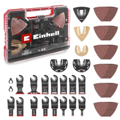 Original Einhell XXL CASE 70 Piece Multi Tool Set (BiM/CRV Plunge Saw Blades, HCS/HM/BiM Half Round Carbide Delta Rasp, Backing Plate, Sandpaper, Dremel Adapter)