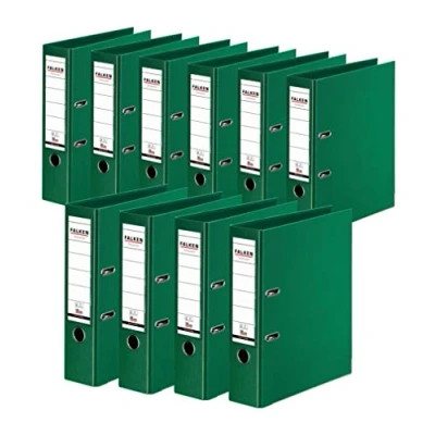 Original Falken 10 pack Chromocolor premium folders. Made in Germany. plastic cover outside and inside 8 cm wide DIN A4 green ring binder file folder letter office