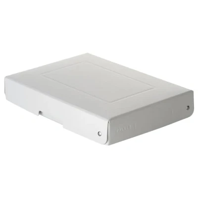 Features: box with lid made of 1.2 mm thick special cardboard, riveted, with labelling field and handle recess, ready assembled, puristic, without plastic, without film, stackable Format: DIN A5, height: 40 mm DIN ISO 9706 certified: defines the specifications for ageing resistance of the material such as acid-free DIN ISO 16245-A: defines the specifications for boxes, archive folders and other envelopes for the storage of written and printed material Made in Germany. Colour: white