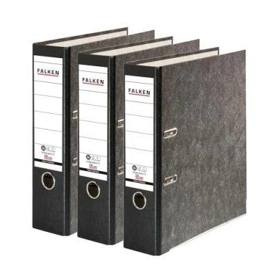 Features: non-slip grained paper cover in cloudy marble design, reinforced quality lever mechanism, edge protection, wheel eyelets, finger hole ring, glued spine label, with black back Colour: black, pack of 3, format: for DIN A4 Length/Width/Height: 28.5 x 8 x 31.8 cm (per folder) / Capacity: approx. 600 sheets (80 g/m²) FSC certified and made in Germany Blue Angel certified