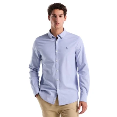 Original Penguin Men's EcoVero™ Oxford Stretch Shirt Long Sleeve 100% Cotton Amparo Blue