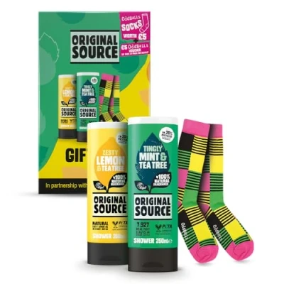 Original Source x Oddballs Gift, Set Mint & Tea Tree Shower Gel, Lemon Socks, Gifts for Men, 100 Percent Natural Fragrance, Vegan, Cruelty Free