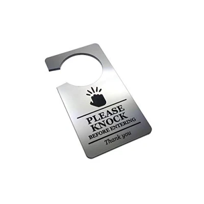 OriginDesigned Please Knock Before Entering Do Not Disturb Room Door Hanger Sign Silver Acrylic for nurses, doctors, students, home use, hotels