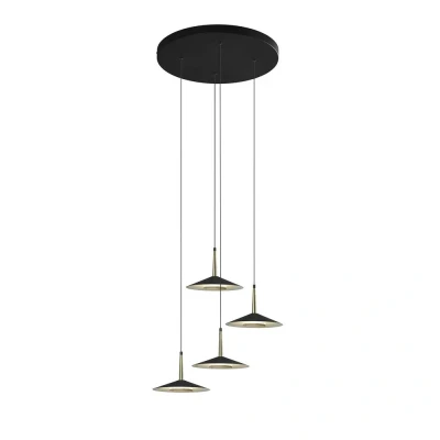Orion 4 Light Round Pendant, 32W LED, 3000K, 2360lm, Black/Antique Brass, 3yrs Warranty