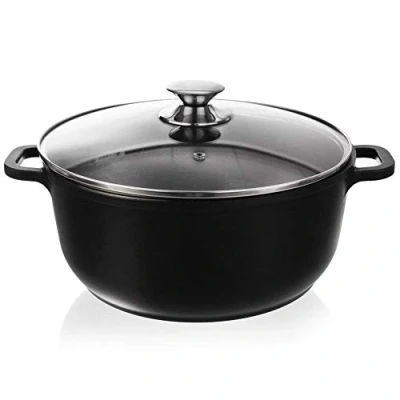 Orion Cast Aluminium Cooking Pot with Granite Glass Lid Diameter 28 cm 7 litres Non Stick Contains No Toxic Compounds, PTFE and PFOA Free
