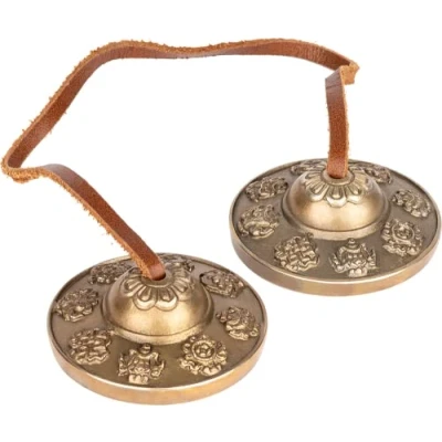 Handcrafted in India — these special cast alloy metal Tibetan finger cymbals, called Tingshas, are made in India and used for meditation, ritual, prayer and as an instrument in Buddhism Exquisite detail — our cast mold (where the molten alloy is poured into) is adorned with an ornamental, Middle-Eastern inspired motif that brings a unique decorative element to space when displayed on a table, desk or shelf Bright and clear tone — use the tingsha to help the mind enter a calm, meditative space, or ring at the end of a sound bath to signal completion — it can also be used as a sound signal for yoga
