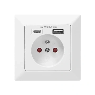 ORNO AE 13232 White Recessed Power Socket USB A + C 5VDC / 2.8A 3680W Type 2P+E French 16A