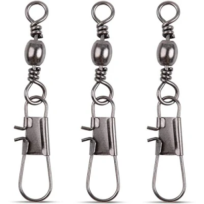 🐟QUANTITY: 100pcs Barrel Swivel with Safety Snap. (Optional Sizes: 1#, 3#, 4#, 6#, 8#, 10#) 🐟TOUGH MADE: Made of solid copper and stainless steel with black nickel plated, the barrel swivel snap has excellent corrosion resistance, rust resistance and abrasion resistance. High-strength, Anti-shock. 🐟FLEXIBLE ROTATION: The barrel swivel delivers infinite smooth rotation even in big force, its burr-free surface won't hurt your fishing line. Great for high-speed trolling, jigging and a variety of fishing situations. 🐟QUICK CONNECT: 2-in-1 fishing swivel snap design for quick replacement of various fishing hooks, baits, leaders and lines in seconds. Save time from different fishing gears together. 🐟VERSATILE: The barrel swivel with safety snap has strong pull, is very light and sensitive to the inforamtion during fishing. Simple design for easy operation, perfect for saltwater freshwater fishing.